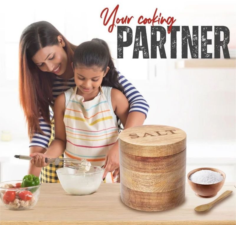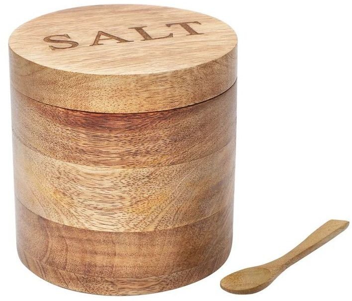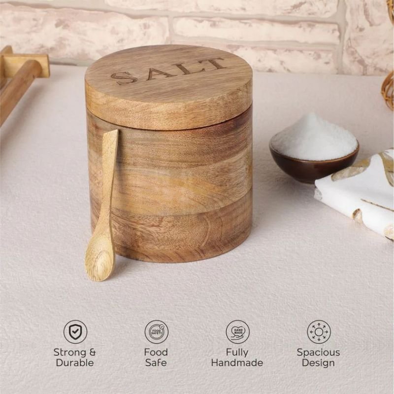The material used in the decorative wood salt container is top notch, which keeps the salt safe from the external material.