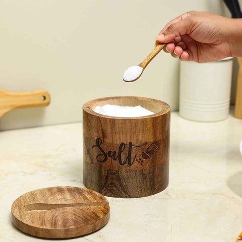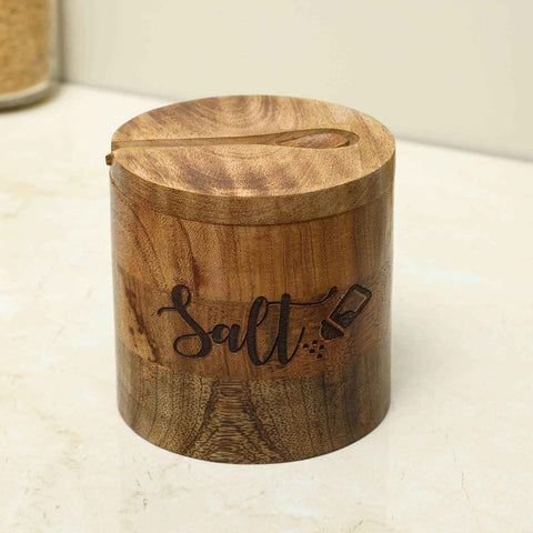 Premium Material: Crafted from high-quality mango wood, the Wooden Salt Box by Dudki exudes natural warmth and elegance, adding a touch of luxury to your kitchen.